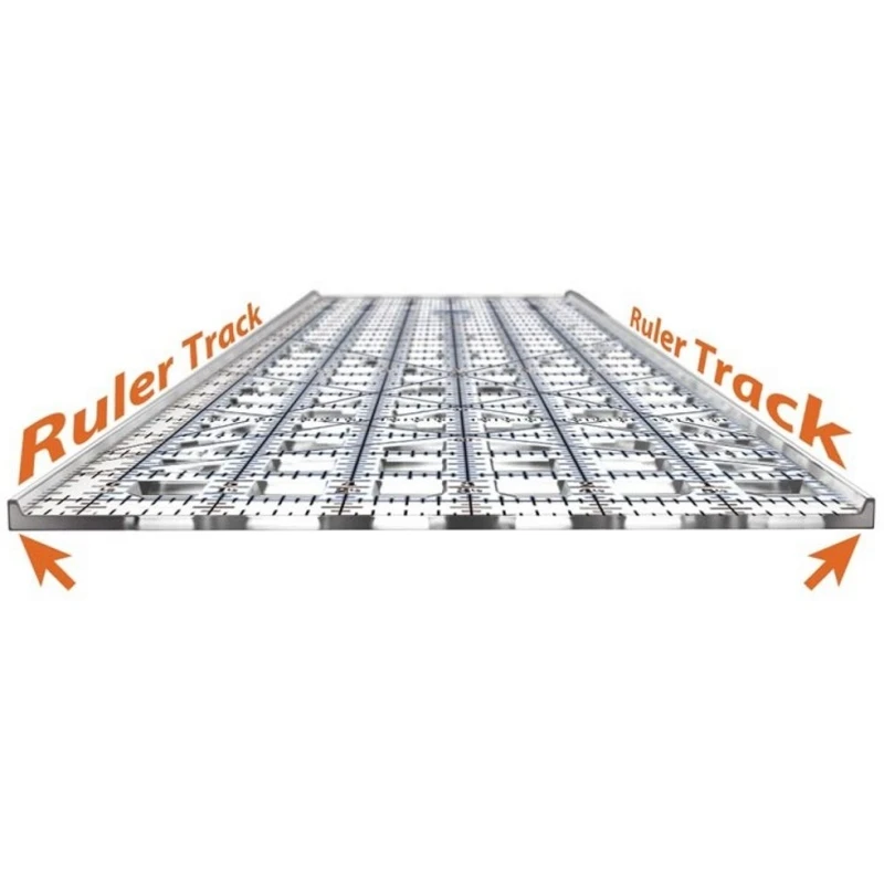 Alle TrueCut-Lineale haben auf beiden Seiten eine erhöhte Kante oder Spur, die zusätzliche Sicherheit beim Schneiden bietet. Die Linealkante vergrößert die Fläche, auf der das rotierende Messer aufliegt. Dies sorgt für einen sichereren und stabileren Schnitt und verhindert gleichzeitig, dass der Fräser über das Lineal rutscht. Die Kante nimmt keinen zusätzlichen Platz in Anspruch oder erweitert Ihre Maße.