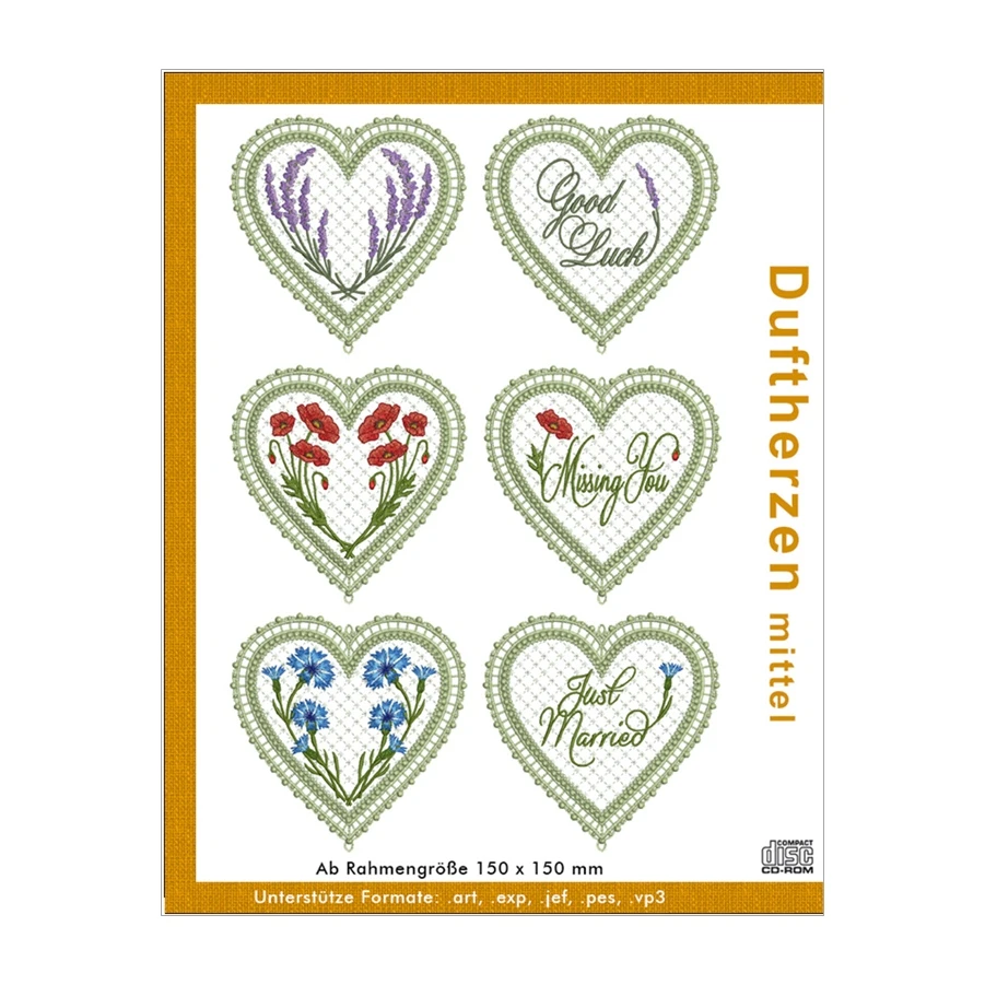 Windesign Stickmuster CD „Duftherzen“ in Lacetechnik (mittel)