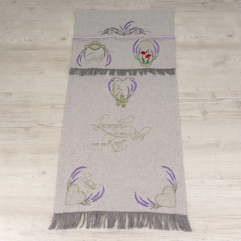 Mit der Stickmuster CD „Lavendel“ kommt südländisches Flair auf Duftsäckchen, Geschirrtücher, Tischsets, Servietten, Wandbilder, Taschen und vieles mehr.