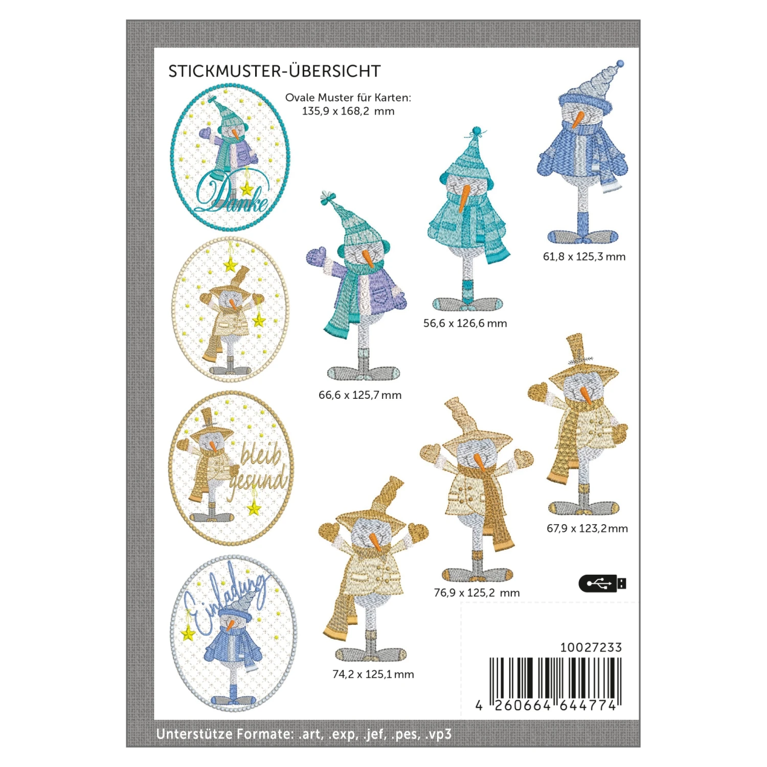 Windesign Stickmuster USB „Schneemänner II“ (10 Stickmotive)